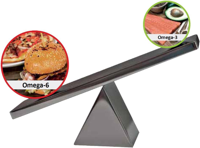 La balance des omégas est donc perturbée et l’expression inflammatoire de la plupart des maladies chroniques, cardiovasculaires, articulaires, cutanées, endocrinologiques ou neurologiques est alors augmentée.